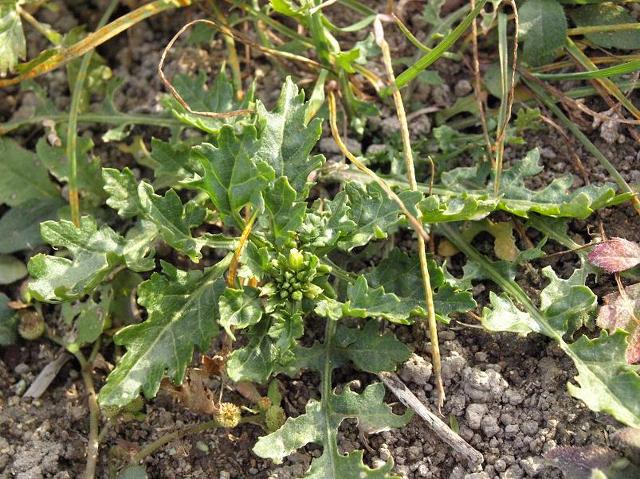 정열편이 가장 크며 가장자리에 결각상의 톱니가 있고 엽병 밑부분이 넓어져서 원줄기를 다소 감싼다. <좀개갓냉이>