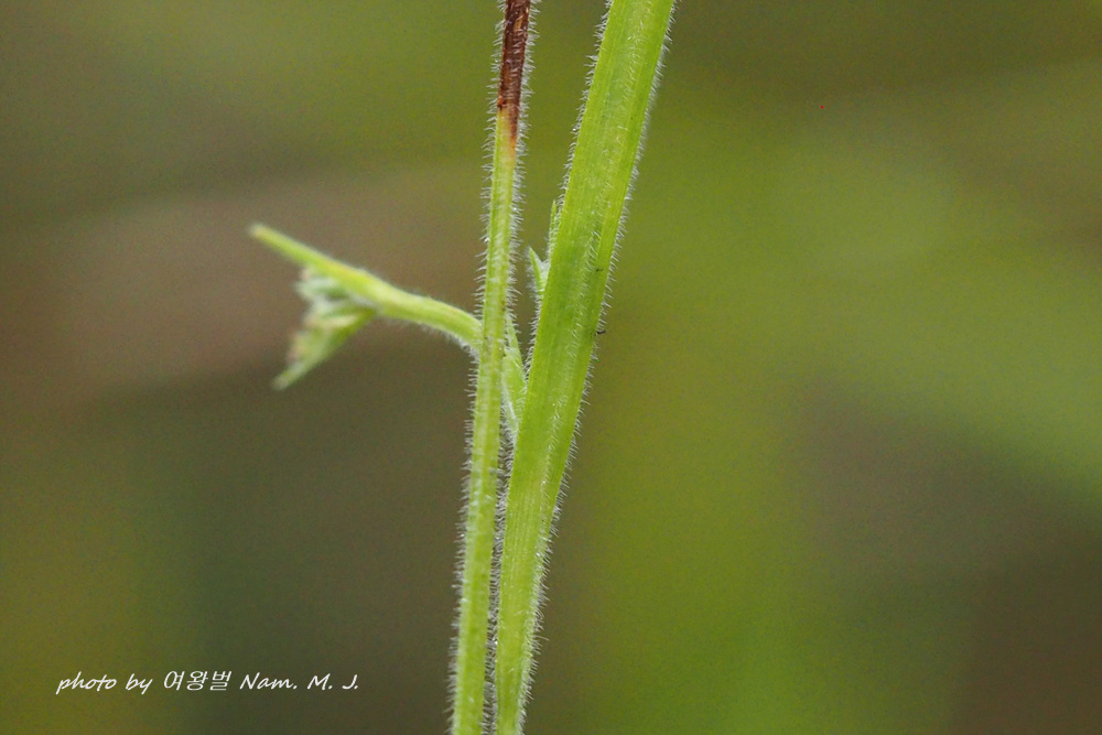 잎과 줄기 포에 뻣뻣한 털이 가시처럼 많다.