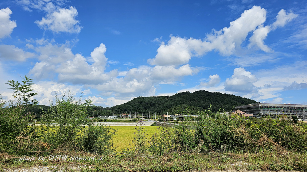 푸른 가을 하늘에 흰구름 동동 띄우고 큰엉겅퀴가 누렇게 익은 벼이삭을 굽어 내려 보고 있다.
