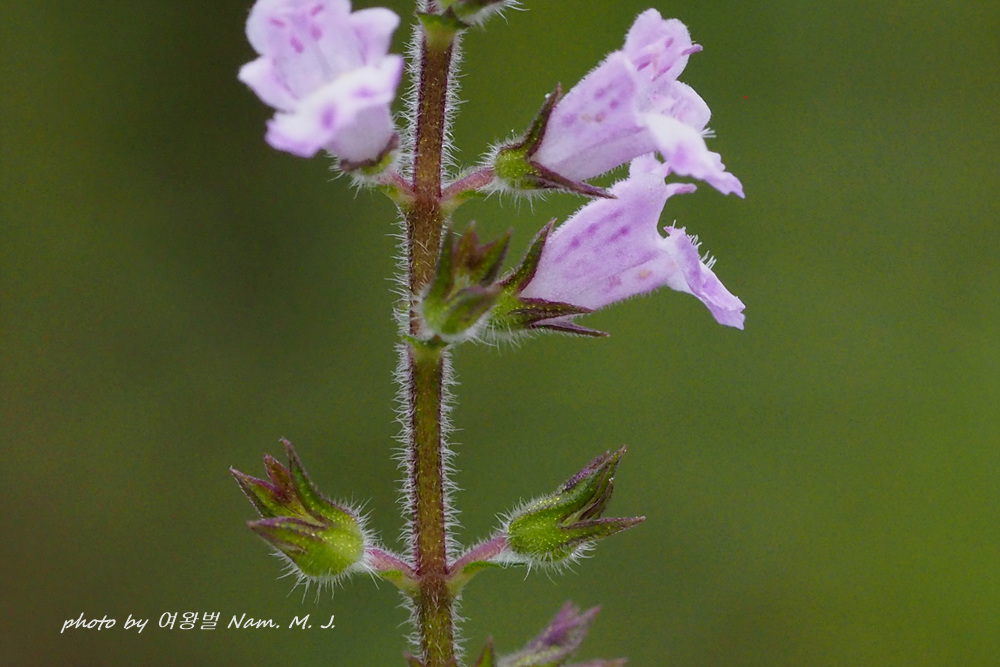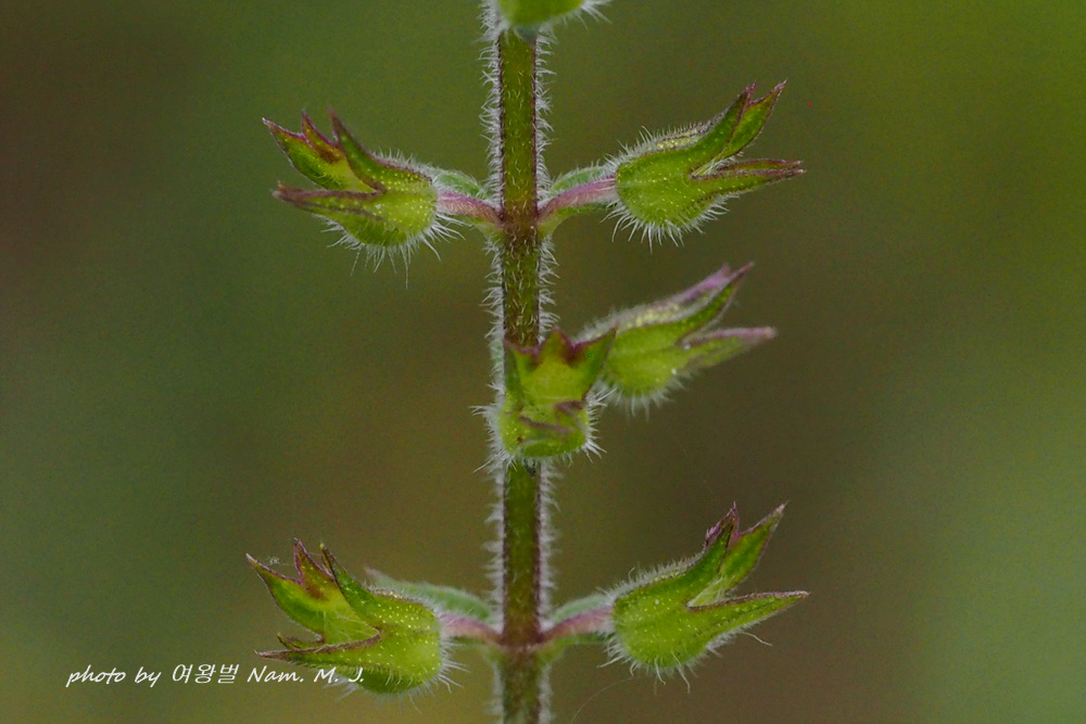 | 쥐깨풀 Mosla dianthera (Buch.-Ham. ex Roxb.) Maxim. | 위쪽 열편의 톱니가 얕게 갈라지고 둔하다 화서에 털이 거의 없다 |
