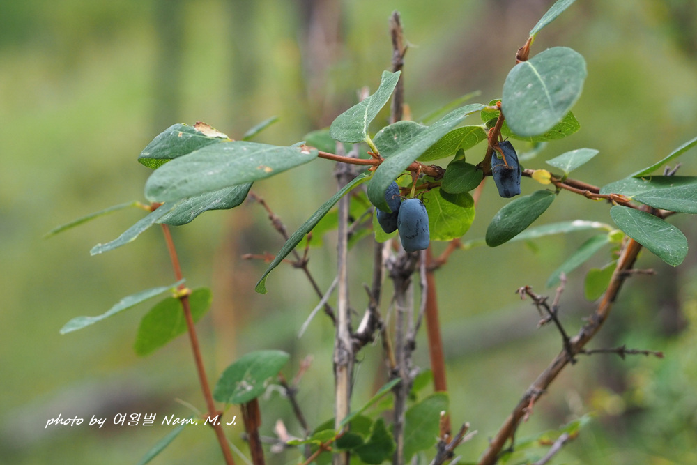 몽골식물 -댕댕이나무(인동과 인동속) 열매 Lonicera caerulea L.